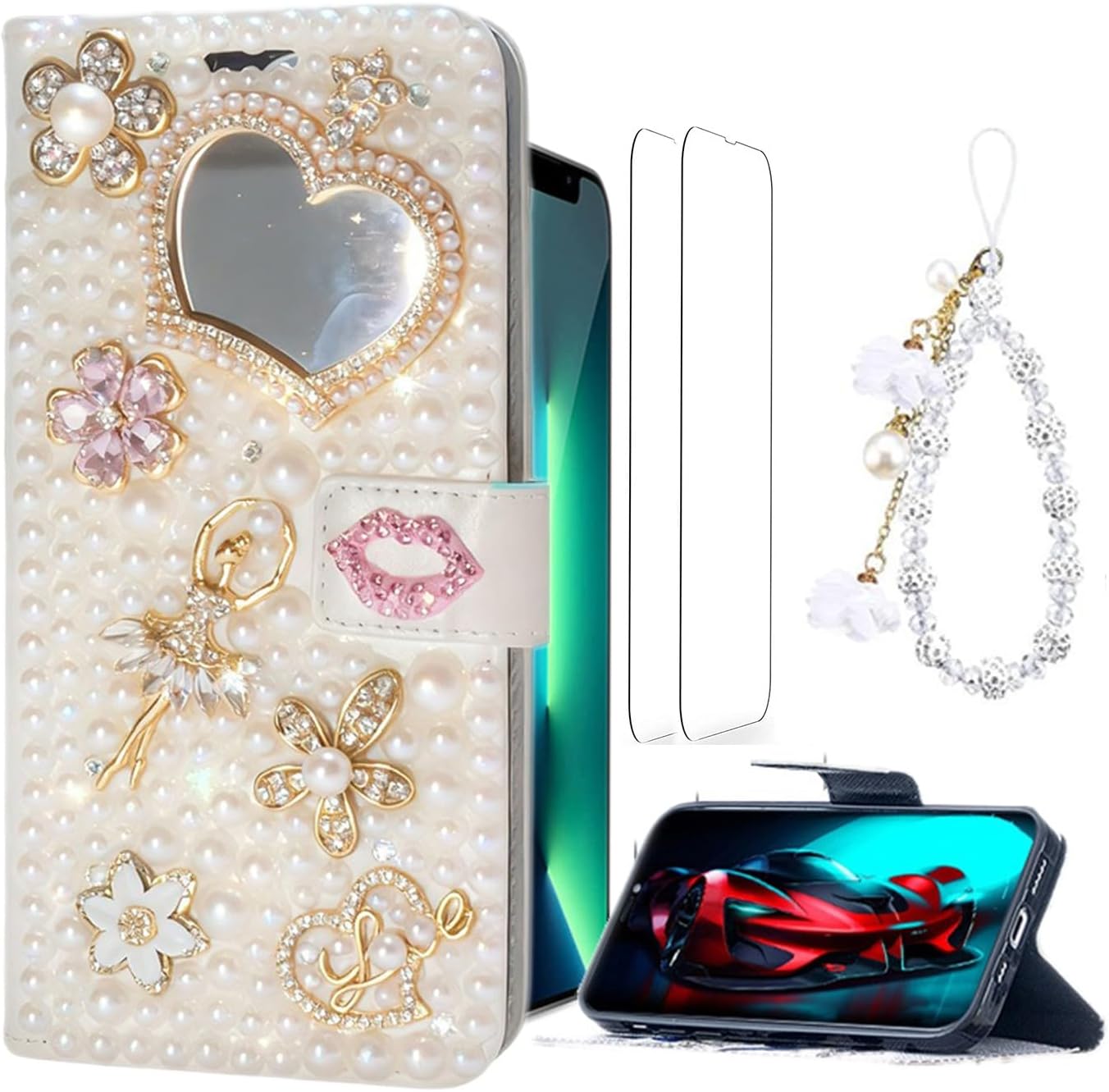 LUZiUN Glitter Bling Handmade Case for Moto G 5G 2025 Elevate your style with the LUZiUN Glitter Bling Handmade Case, a luxurious accessory designed to make your Moto G 5G 2025 stand out. Meticulously crafted with sparkling rhinestone and crystal details, this handmade leather wallet case combines fashion and function, turning heads wherever you go. The transparent, crystal-clear back lets your phone¡¯s sleek design shine through, while the eye-catching bling adds a touch of glamour. Step into the sunlight, and your device will dazzle like diamonds, instantly making you the center of attention and showcasing your elegant and sophisticated style. Despite its opulent look, this case is surprisingly slim and lightweight. Its pocket-friendly design slides easily into bags or pockets, ensuring you can carry your phone with ease, no bulk, no hassle. Each package includes everything you need for complete protection and style: 1 x LUZiUN Luxury Wallet Case, 2 x Screen Protectors, and 1 x Floral Pearl Crystal Strap, so you can enjoy a premium experience right out of the box.