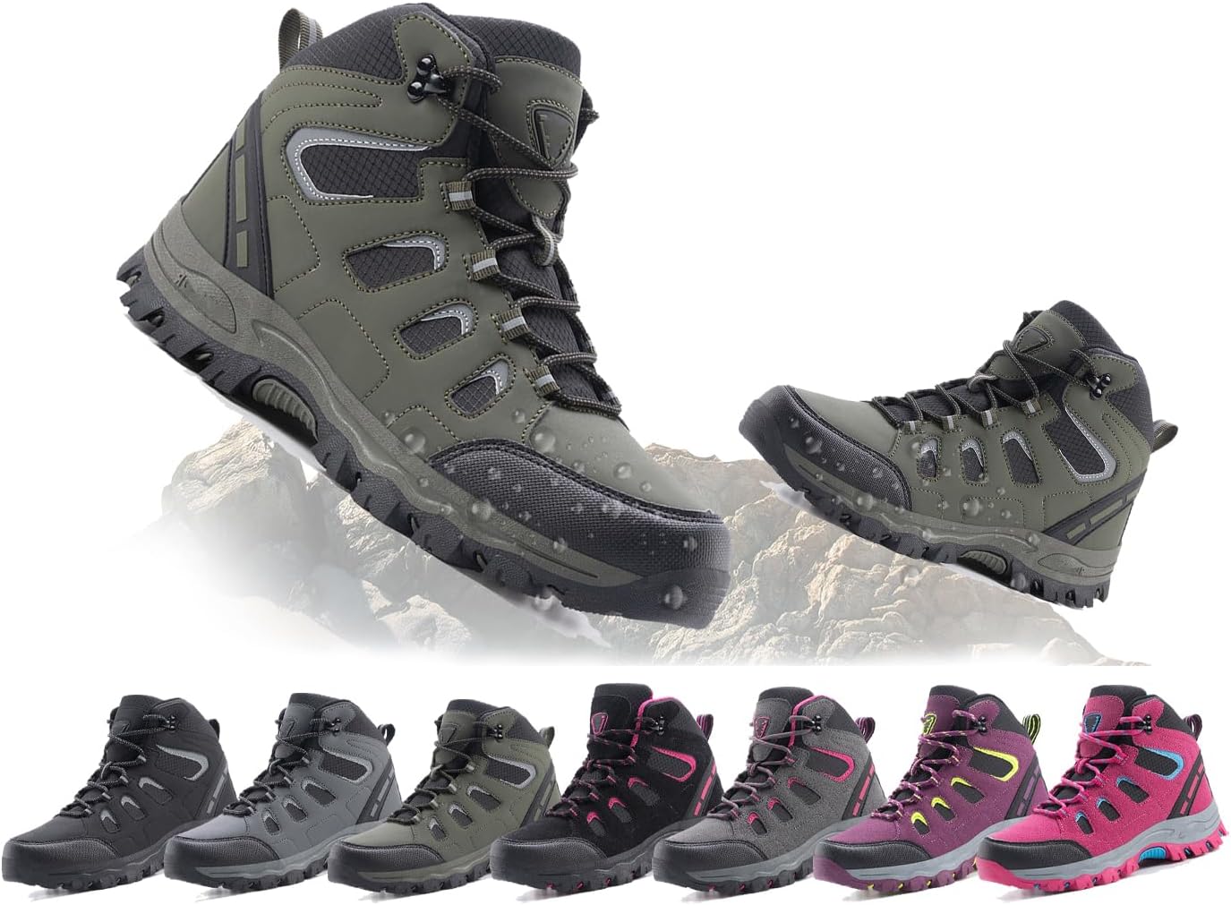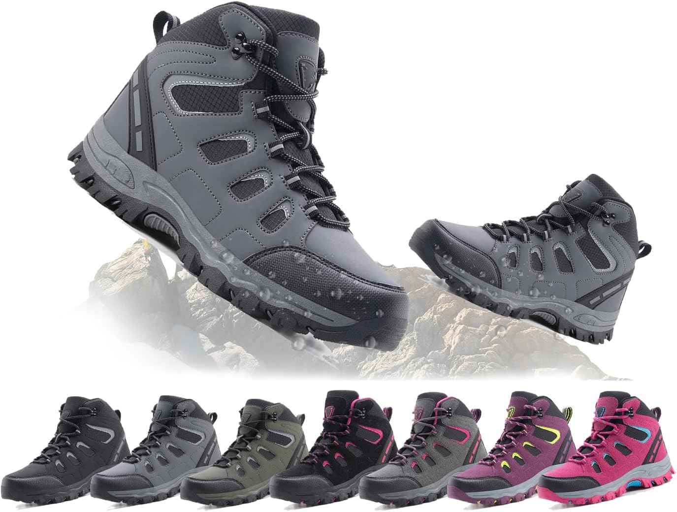 Men’s Women's Lightweight Waterproof Hiking Boots – Built for Comfort, Protection & Adventure Designed for outdoor enthusiasts, these Women's men’s mid-ankle hiking boots deliver reliable performance across trails, trekking routes, and everyday outdoor activities. Combining lightweight construction with durable materials, they offer long-lasting comfort without sacrificing protection. The waterproof man-made upper helps block moisture while remaining quick-drying, keeping feet dry in wet or sweaty conditions. A breathable mesh lining improves airflow, reducing heat buildup and helping maintain foot freshness during extended wear. Reinforced stitching enhances durability, making these boots suitable for rugged terrain and frequent use. The TPR outsole provides dependable anti-slip traction and flexibility, allowing confident movement across dirt paths, rocky trails, and uneven ground. Ideal for hiking, trekking, trail walking, travel, and casual outdoor wear—these versatile boots are designed to adapt to all seasons and diverse environments. Product Specifications Product Type: Men’s Women's Hiking Boots Upper Material: Man-Made Materials / Suede Finish Inner Material: Breathable Mesh Insole Material: Fabric Outsole Material: TPR (Slip-Resistant) Toe Style: Plain Toe Pattern: Geometric Printing Type: Positioning Printing Features: Lightweight, Waterproof, Anti-Slip Suitable Season: All Seasons Package Includes 1 × Pair Women's of Men’s Waterproof Hiking Boots Warm Note: 1.Please Allow Slight Size Errors Due To Manual Measurement. 2.Due To Differences Between Monitor Displays, Actual Color May Vary Slightly From Image.Thanks For Your Understanding.