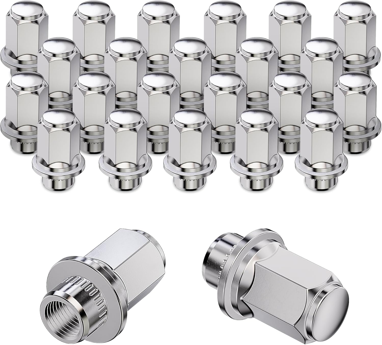 | Special Features | Compatible with F250 F350 F450 F550 F600 Super Duty, M14x1.5 Flange lug nuts fit for your original wheel lug nuts with a 14mm-1.5 thread and take a flat seat; Oem factory style, perfect for matching your factory's stainless steel/aluminum wheels; One-piece structure design provides better strength and durability; Chrome plated surface prevents corrosion and rust, ensuring long-term use; Precision thread machining, perfect fit, non-destructive installation. |