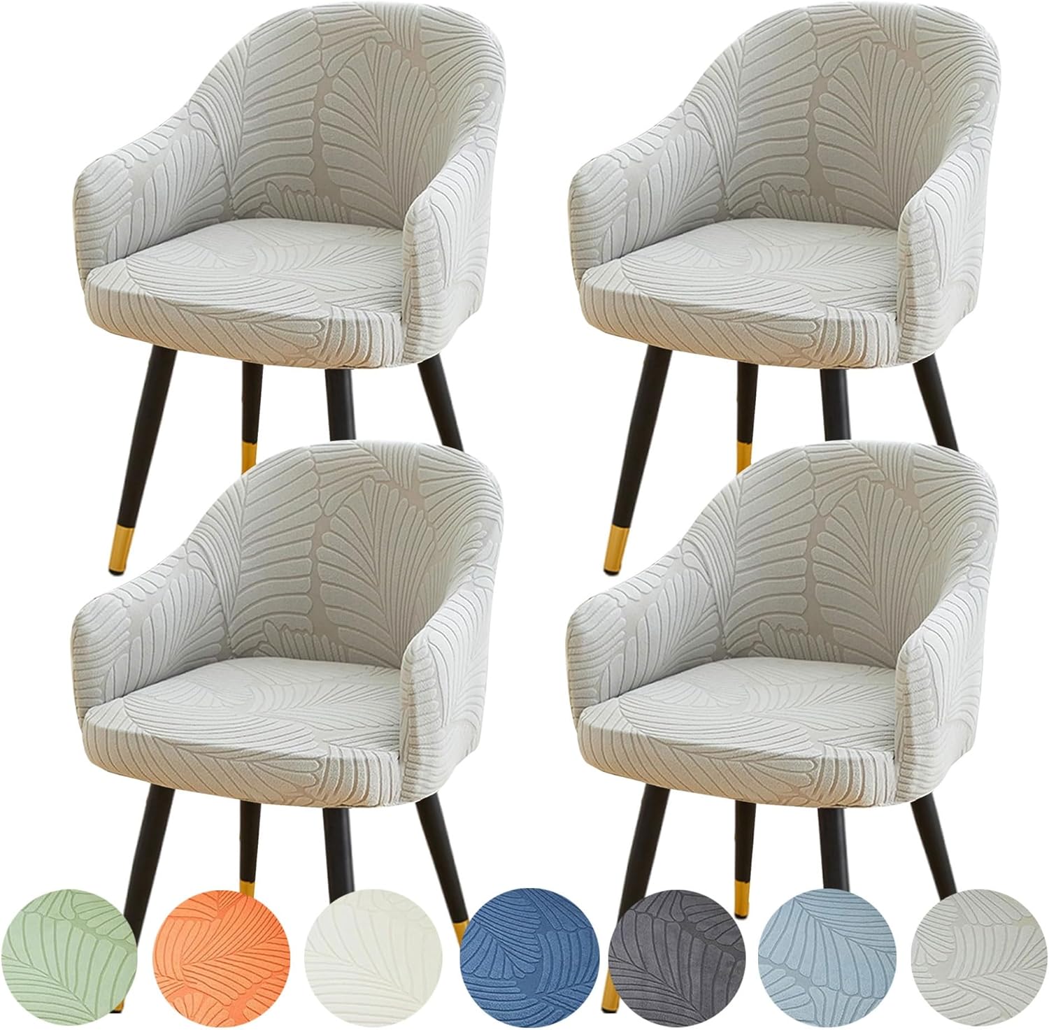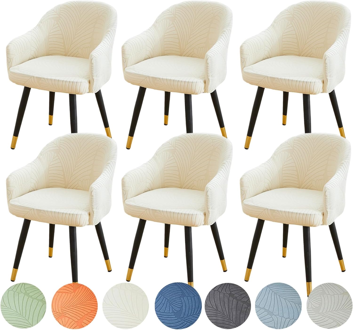 - Product Name: High elastic curved back armchair dining chair cover- Please Note:Just a Cover ! No Chair !- Material: Polyester and Spandex- Suitable Size:This dining room chairs covers fit most curved back chairs,accent chairs,dining chairs with arms.Our curved back chairs fit:Overall height: 19-20.5 inches (48-52cm);Back height: 15.7-17.3 inches (0-44cm);Seat width: 19-21.2 inches (48-54cm);Seat depth: 17-18.5 inches (43-47cm);Armrest height: 6.7-8.3 inches (17-21cm).Please measure your armchairs before choosing our chair covers.Besides, elastic band at the bottom makes the chair slipcovers anti-slip and stay in place.Package Contents:1/2/4/6 x Set of Chair Cover (Chair Not Included)Kind Tips:1.Please measure your armchairs before choosing our chair covers.Please allow slight measurement errors due to manual measurement.2.Due to the difference in light and display,the color may be slightly different from the picture and the product.3.If you have any questions,please contact us via email and we will be happy to assist you.