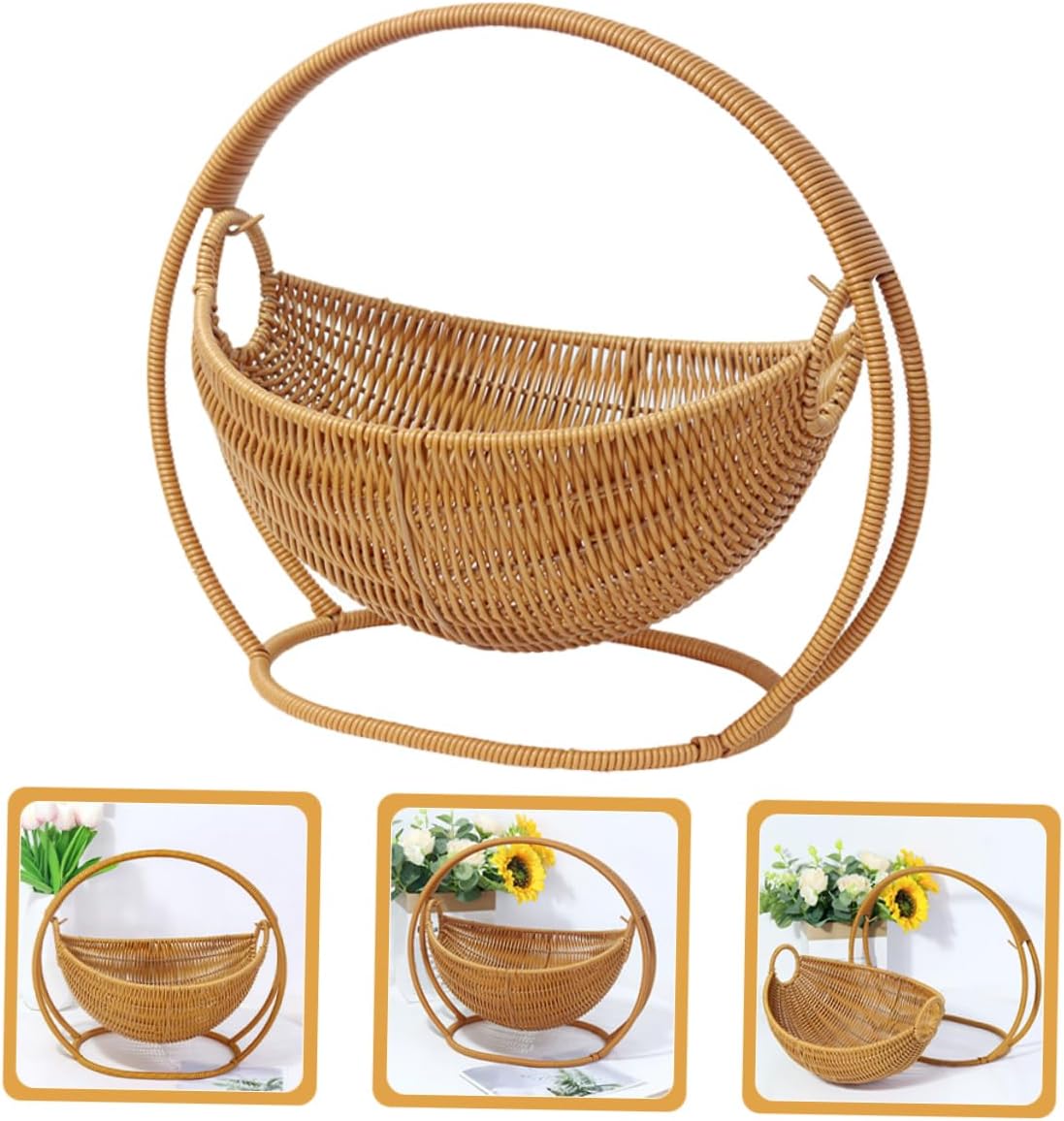 Package List 1 x fruit basket Features - construction: the rattan faux rattan material this basket is and , providing and decoration for years to come decorative bowl -Chic design: the unique cradle shape and faux rattan material give this fruit basket and contemporary look, making it a stylish addition to any kitchen or living room harvest basket -Suit for gifting: with its elegant design and functionality, this basket makes an excellent present for friends and family, suitable for any occasion from housewarmings to holidays snack organizer -Versatile storage: ideal for holding fruits, snacks, candies, and other small items, this basket offers versatile storage for various needs, keeping your space organized decor bowl -Material:Plastic woven rattan snack basket -Rattan choice: crafted from rattan materials, this basket is a sustainable and environmentally for your home, combining style with responsibility countertop fruit basket -Color:Beige fruit bawl -Size:29.50X29.50X25.00cm/11.59X11.59X9.82in wicker basketsGoods Informationsmall fruit basket The contemporary look of this bowl adds a touch of sophistication to your kitchen decor.picnic baskets Its sleek design and ample space make it Suit for storing a variety of fruits and vegetables.bed tray decor Place it on your countertop to keep your produce fresh and easily accessible.wicker trays for decor Organize your kitchen with this modern fruit bowl
