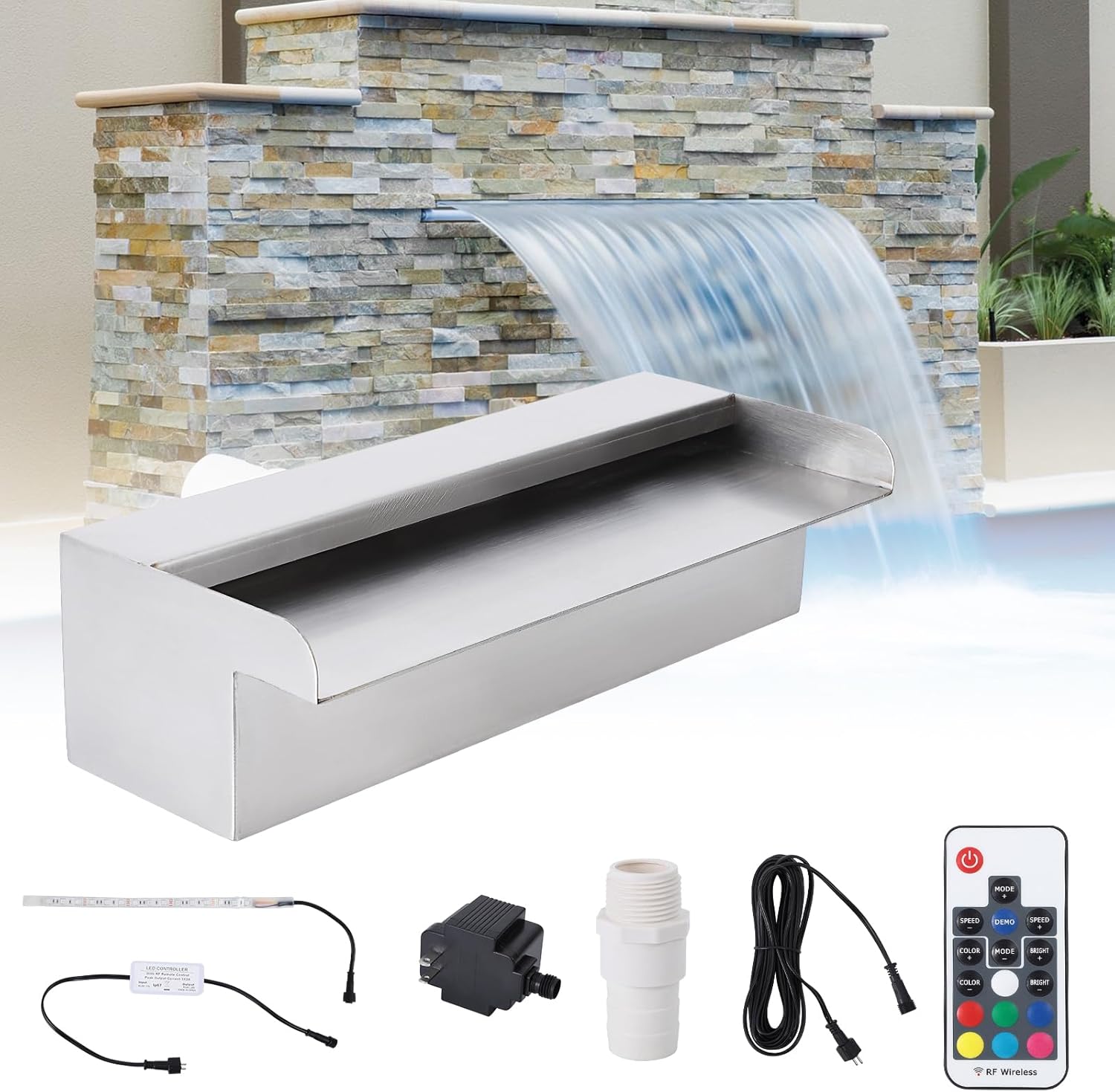 The gentle of water paired with vibrant 9-color LED lights adds a magical touch, making your space perfect for relaxation or entertaining guests. Whether you are hosting a summer barbecue or enjoying a peaceful evening, this waterfall will elevate the ambiance of any outdoor setting.This design effectively enhances the calming sound and sight of falling water, allowing you to enjoy the soothing sensations that come with it. The consistent and gentle will create a tranquil environment, making it an ideal addition to any outdoor or indoor setting.